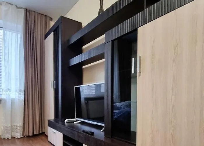 This apartment also comes with an equipped kitchenette. The property is situated within 1 km of Pozniaky underground station and 14 km from Kyiv Central train station.